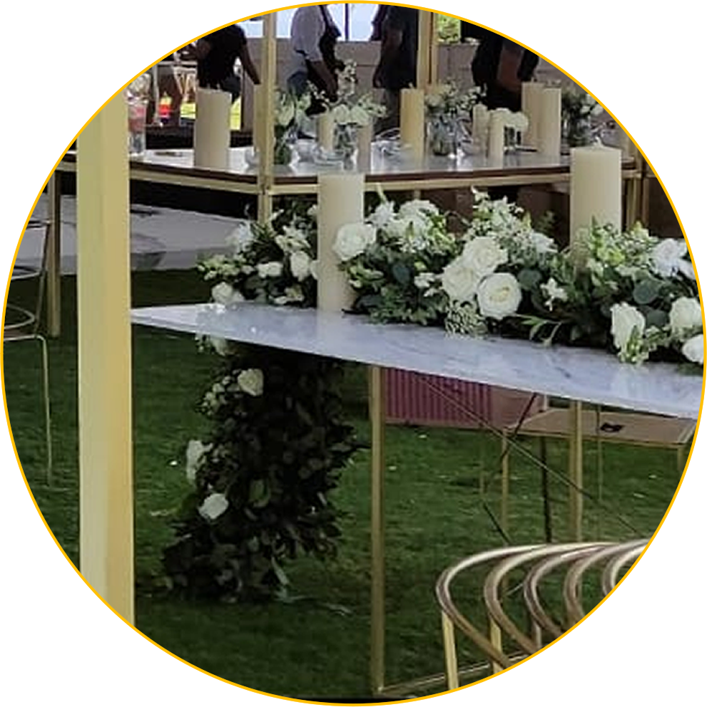Algunos de nuestros servicios de decoración son: Montajes de ceremonia personalizado con pérgolas, caballetes, espejos o hexágono con macramé; arreglos florales naturales o artificiales que embellecen cada rincón; velas colgantes, a desnivel o sueltas para una atmósfera cálida; series de luces, guirnaldas, focos o reflectores que iluminan con encanto; túneles de luces o flores que añaden un toque etéreo; Backs de novios o mesa principal como escenario perfecto; tarimas personalizadas y pistas de baile de madera o pintadas a mano para brillas en la pista; techos o paredes entelados o con luces que elevan el ambiente; mamparas o muros decorativos; efectos como humo, niebla, confeti, mariposas blancas o chisperos para instantes mágicos; barras de bebidas; músicos en vivo desde coros y grupos hasta saxofonistas o violinistas para melodias inolvidables; mobiliario lounge que invita a un momento de relajación; calentadores para el confort de todos;estructuras o ground support que dan vizuales únicas; pantallas y todo lo que soñaste para hacer realidad el evento de sus sueños!